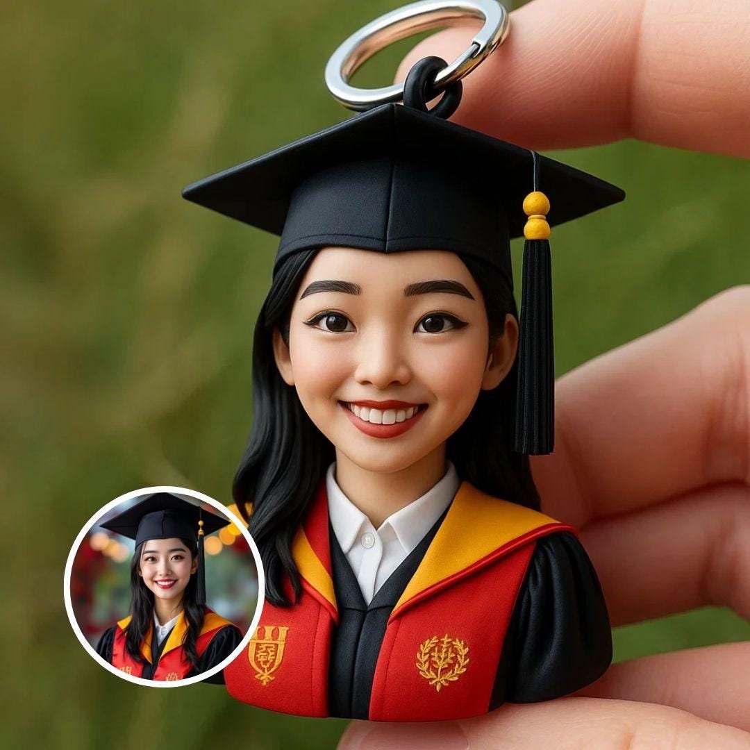 3D fotoğraflı mezuniyet anahtarlığı: kişiselleştirilmiş Kadın Mezun büstü hatıra (8CM)