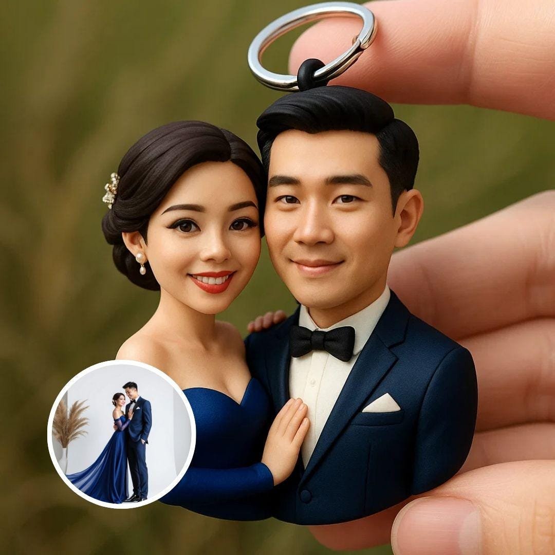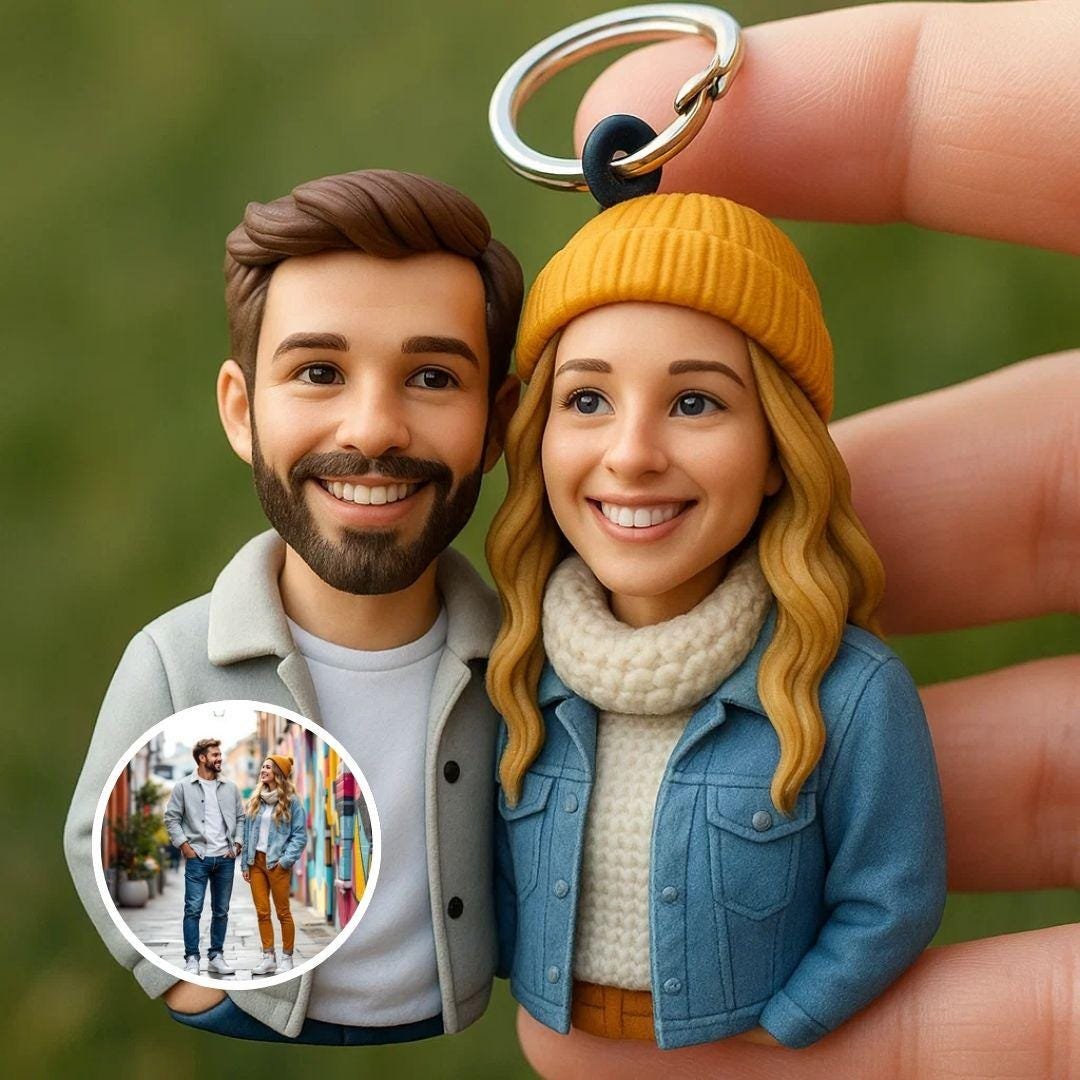 📸 Sadece net bir fotoğrafınızı yükleyin, gerisini biz hallederiz. Benzerliğinizi hassasiyetle şekillendirip gülümsemelerinizi, kıyafetlerinizi ve jestlerinizi yeniden yaratacağız – ve aşk hikayenizi anahtarlık formunda göndereceğiz.