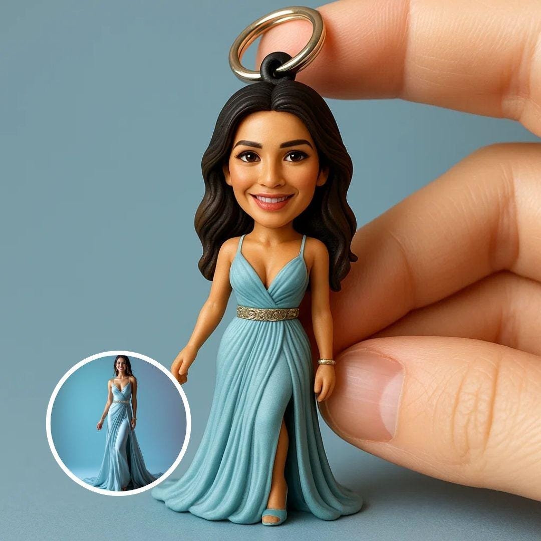 Bu el yapımı özel 3D tam vücut anahtarlıkla benzersiz tarzını kutla! İster şık bir takım elbise, ister cesur desenli bir tulum, isterse göz alıcı bir gece elbisesi olsun, sanatçılarımız fotoğrafını kişiliğine, gardırobuna ve çekiciliğine uygun detaylı bir mini figüre dönüştürüyor.