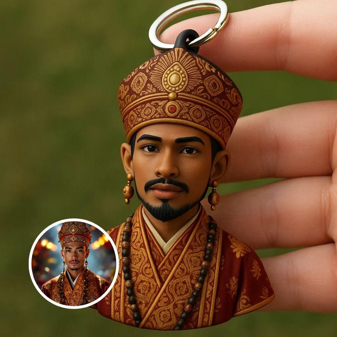 Bu son derece detaylı 3D anahtarlık büstü, fotoğrafından doğrudan modellenen geleneksel kraliyet veya dini kıyafetin zarafetini ve törensel gücünü yakalar. İster manevi bir lideri, ister soyluyu, ister törensel kıyafetlerle onurlandırılan birini temsil etsin, minyatür figürinimiz mirasını mükemmel hassasiyetle onurlandırır.