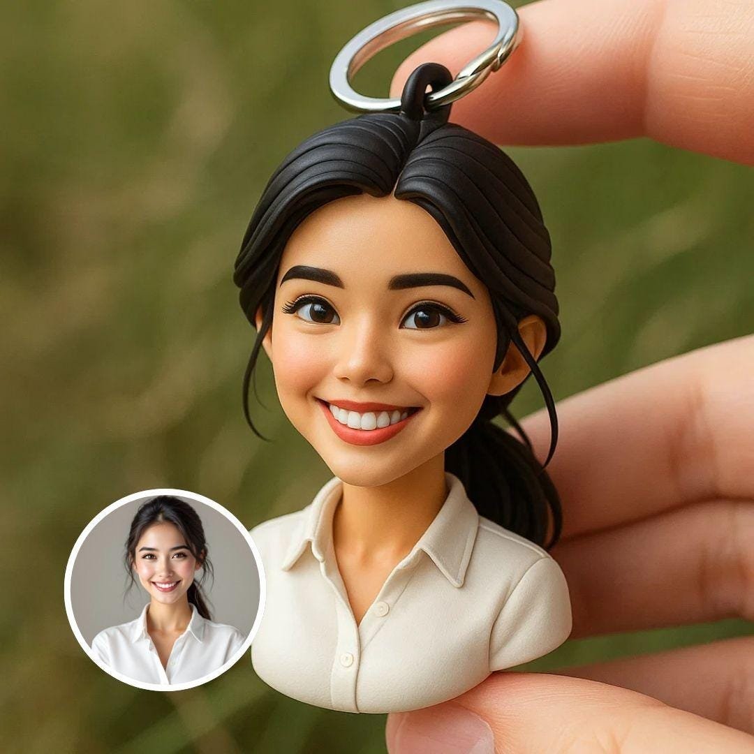 Bu kişiselleştirilmiş 3D portre anahtarlık, en sevdiğin fotoğrafından el işçiliğiyle yapılır ve gerçekçi bir büste dönüştürülür — sevdiklerini, arkadaşlarını veya hatta kendini her yere yanında taşıman için tasarlandı.