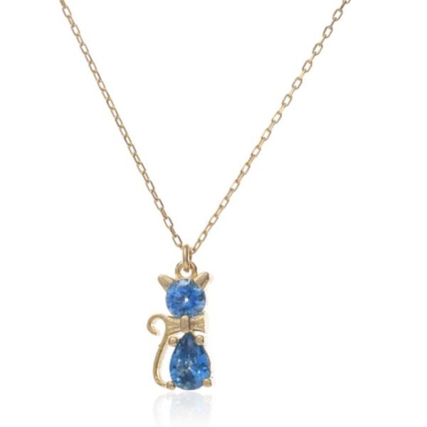 Cat Necklace with Blue Gemstone – Gold Plated Sterling Silver Animal Jewelry, Personalized Birthstone Pendant Gift for Women