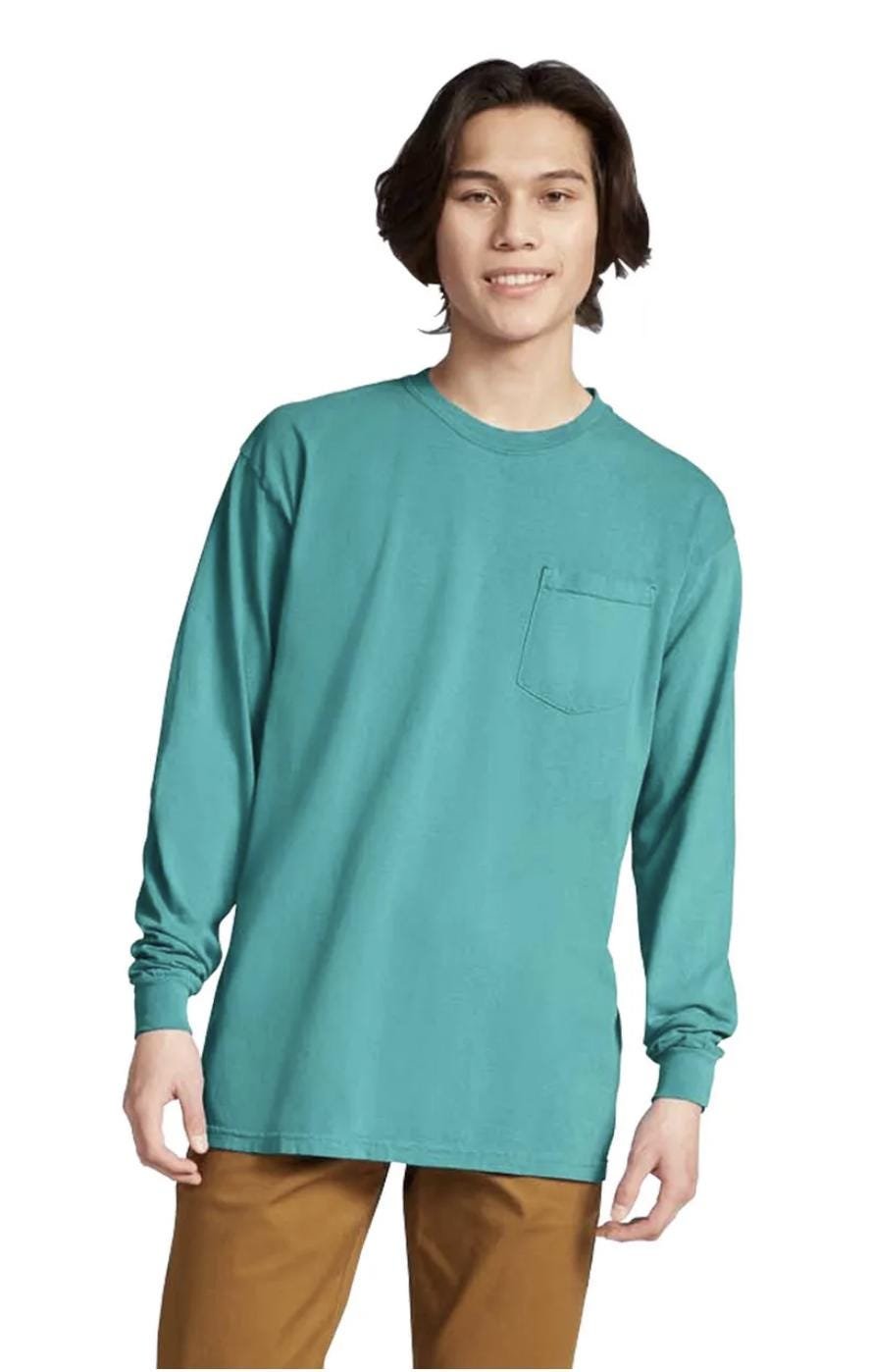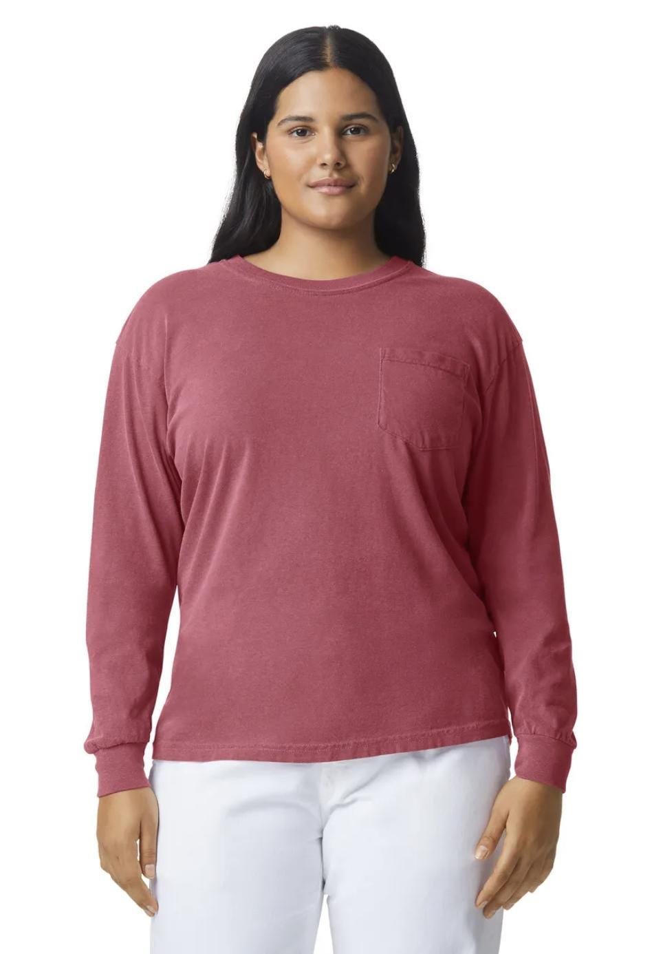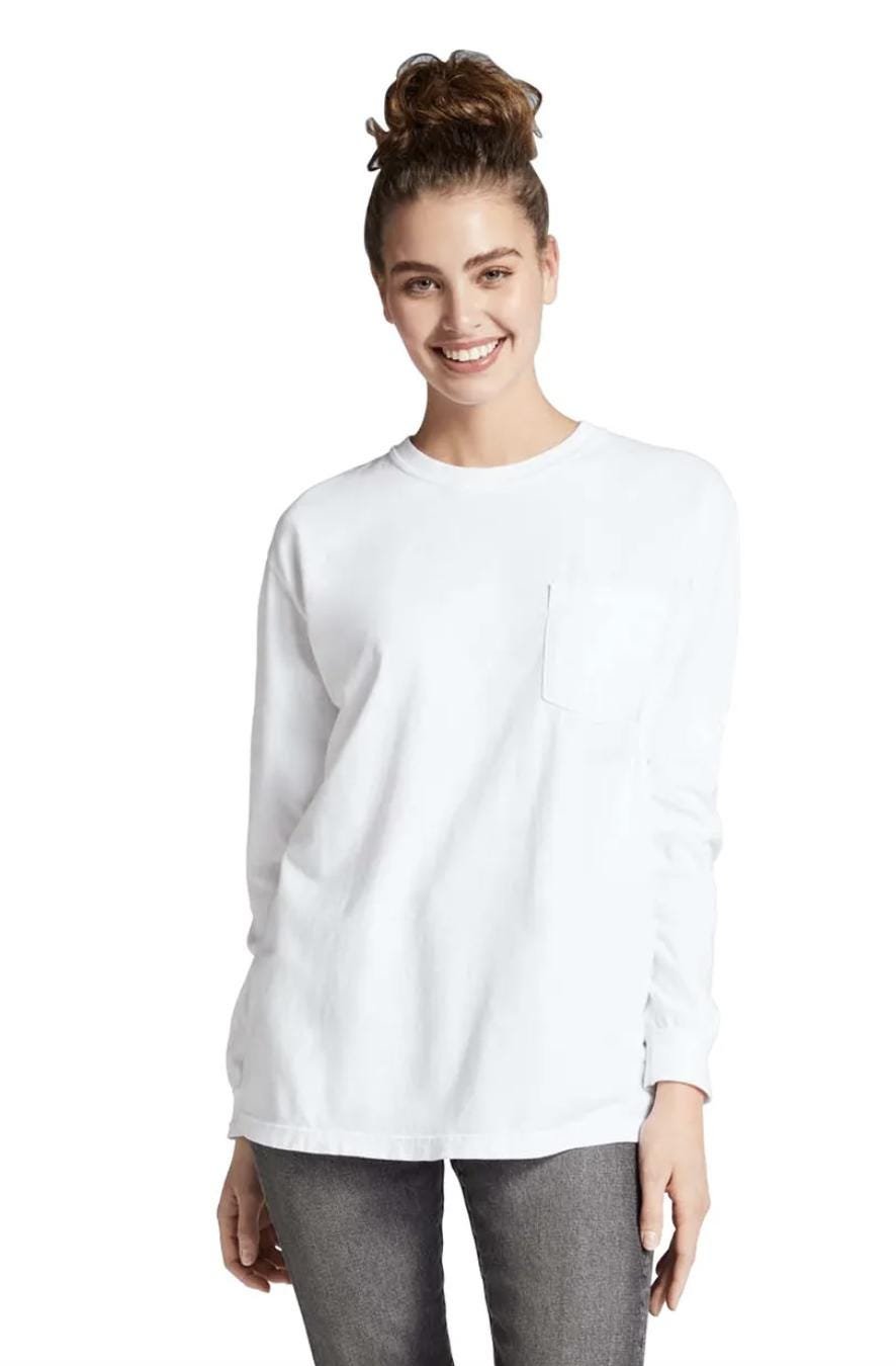 Comfort Colors Uzun Kollu Cepli Tişört Özel Nakışlı veya Baskılı Unisex Tişört